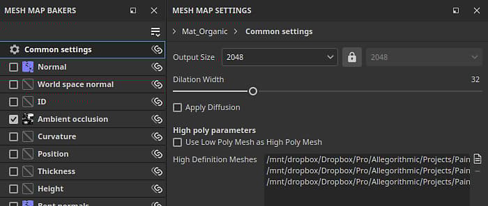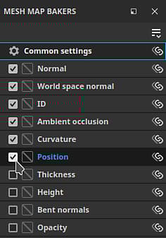 In the Mesh map bakers panel, click on the common settings to change the settings like baked map resolution, dilation width, and high poly parameters, that are shared across all maps: