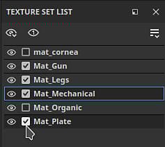 Inside the Texture Set list, use the checkbox next to each Texture set (and UV Tiles number if present) to select which parts to bake:
