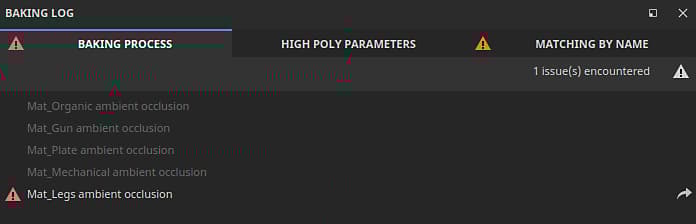 If there are any, use the arrow next to the error message to view the relevant baker settings:
