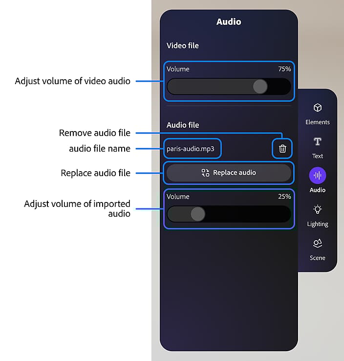 Importing resources can be done simply by drag and dropping a file from outside the application into different areas of the interface.