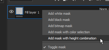 It is possible to right-click on a layer and choose the shortcut “Add mask with height combination” to quickly add this new effect on a layer. This shortcut will also switch the Height channel blending mode to “Normal” instead of the default “Linear Dodge (Add)”.