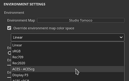 Inside the display settings, enable the Override environment map color space then choose a color space in the list that matches your resource.