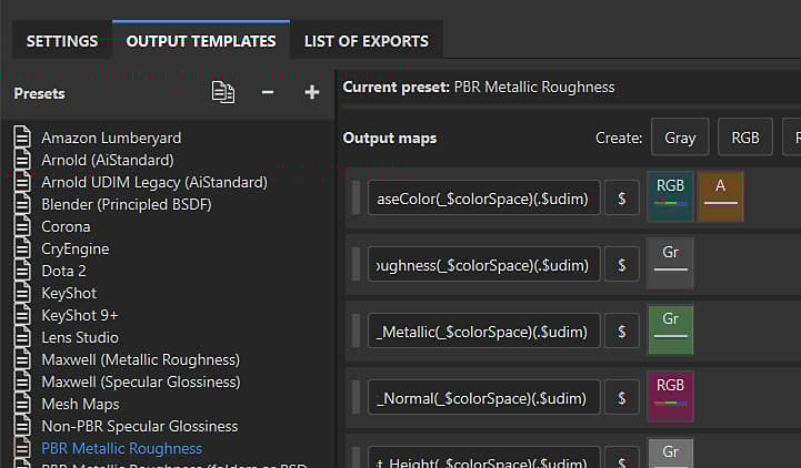 Substance 3D Painter has two types of Output template that can be used to control the behavior of the export process.