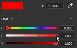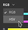 The sliders can be set two different modes, HSV or RGB. To change the mode, use the dedicated dropdown menu.