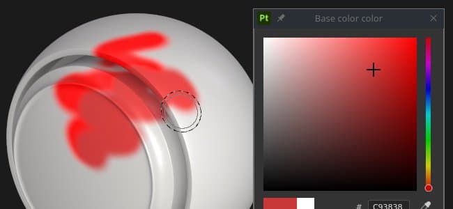 The color picker window appears when clicking on any color field in Painter, which can be found in Properties or within any additional settings or menus, like Display or Shader parameters.