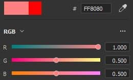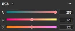 - RGB: components are represented as value going from 0 to 255.