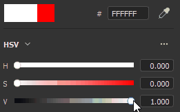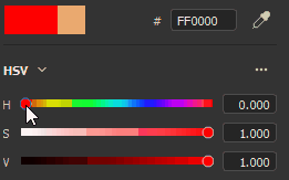 - HSV: the hue slider is measured in degrees (like a color wheel). Saturation and Value use percentages.