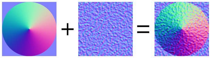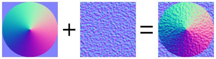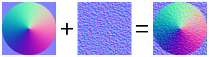 Detail Oriented Blending operation (Reoriented Normal Mapping), more precise than Normal Map Combine. Preserve flat normal maps and the intensity of the two sources. To ensure that result the Top layer normal is reoriented to follow the surface of the bottom layer. See Normal Map Paintingfor more information.