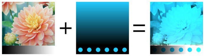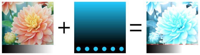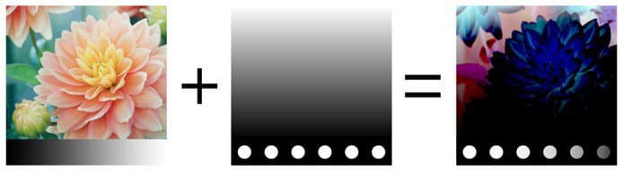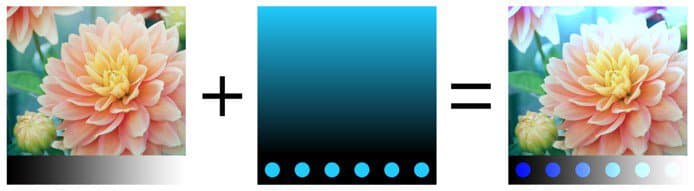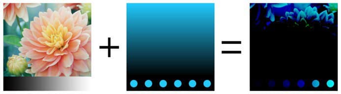 Performs the operation with the HSV model. Keeps only the Hue and Saturation of the Top Layer and uses the Value of the Bottom Layer. Black and very dark colors don’t have any Hue and are desaturated, therefore colors of the Bottom layer will become grayscale values.
