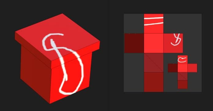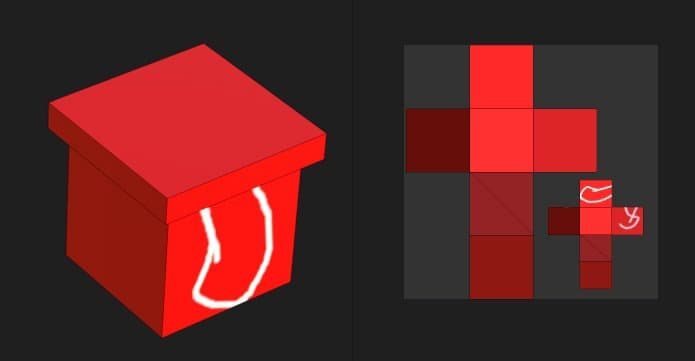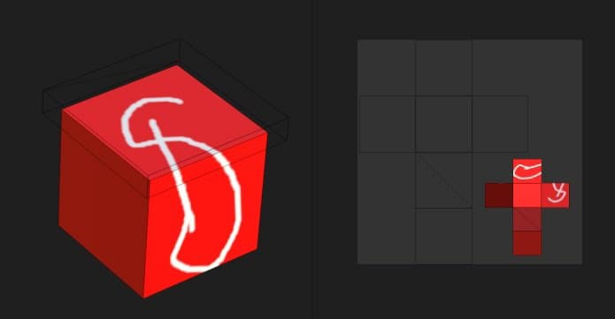 In the example below, the 3D model has been split in two objects: a top and bottom part. By default brush strokes collide with all the objects. by excluding the top part it is now possible to only paint on the bottom part exclusively.