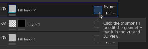 To modify the Geometry mask of a given layer, simply click on the dedicated icon. To exit the editing mode, simply click on another part of the layer such as the content or the paint mask: