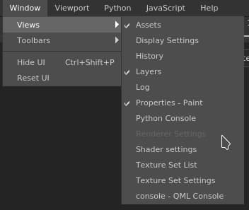 The window menu allows to display a list of the windows and if they are visible in the interface. You can also use the toolbar menu to hide some toolbars.