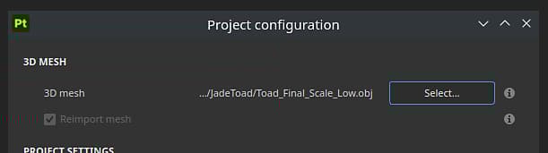 The project setting window allows to modify a few properties related to the current project, such as the reloading of a new mesh.