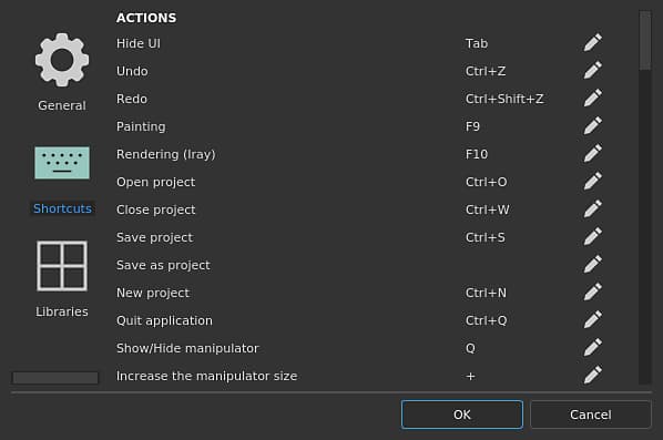 List of editable shortcuts