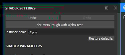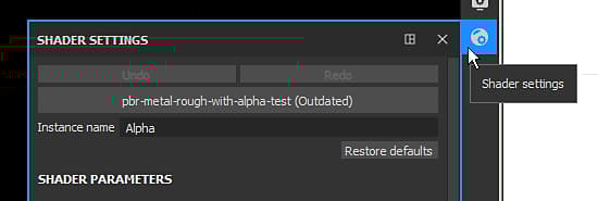 The Shader settings window is available on the right by default in the Dock toolbar.