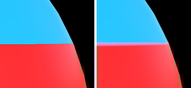 - 3D Space Neighbor (default): Look at the other side of the UV seam to find the neighbor pixel color and use it at the UV border. This setting is recommend when painting across UV seams with continuous patterns. Example with regular padding at left, and the 3D Neighbor on the right: