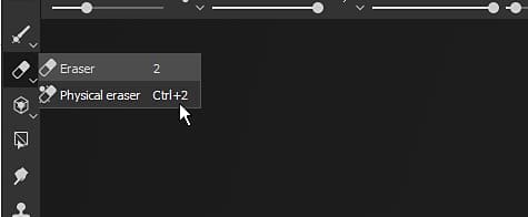 The Tools toolbar is available by default at the top left of the main interface. It lists all of the painting toolsthat can be used to texture the 3D mesh of the currently open project. These tools are only accessible when a paint layer is selected.