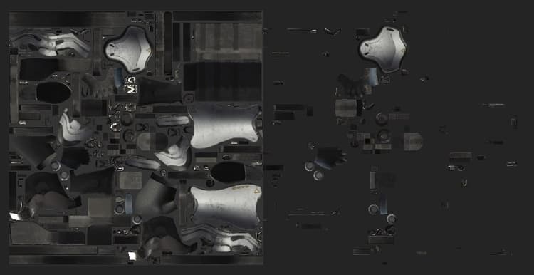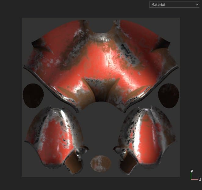 The 2D View displays the mesh UV islands from the currently selected Texture Set. It allows to see the textures from the Layer Stack but also to paint on the mesh UV islands.