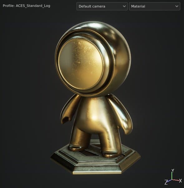 At the top left of the viewport may appear a text indicating the currently loaded profile. For more information see the Color Profile page.
