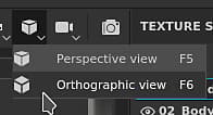 - Perspective view (default): displays the 3D mesh as it would be seen by the human eye or a camera.