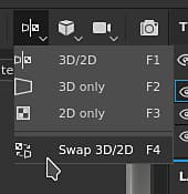 - 3D/2D (default): display both the 3D and 2D views in the viewport