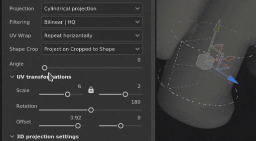 Enabling Backface Culling allows to cull projection at a perpendicular angle to the cylinder. The Hardness slider defines how soft the projection is at intermediate angles (which are not a full 90 degrees).