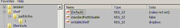 - Do a right-click > new > String value in the right part of the window. Name it path and set the value to path where the shelf is located.