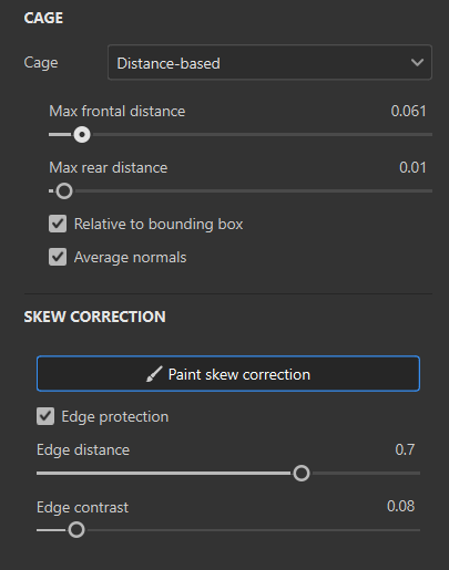 With Cage set to Distance-based, under Skew correction, select Paint skew correction to start painting on your low-poly mesh.