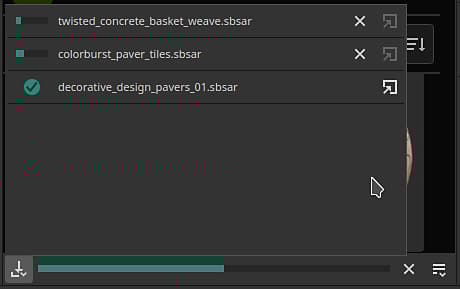 You can see the assets currently being downloaded via the dedicated manager using the bottom left button of the window. Assets that may fail to download can be started again from this list.
