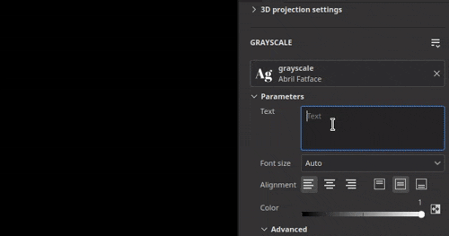 Fonts can be used as text resources like any other kind of resource. Drag and drop them to automatically create fill projection. They can also be used in brushes or as input in Substance filters.