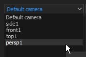 - Switch to the desired camera with the dropdown in the viewport or by using the settings in the Display Settings.