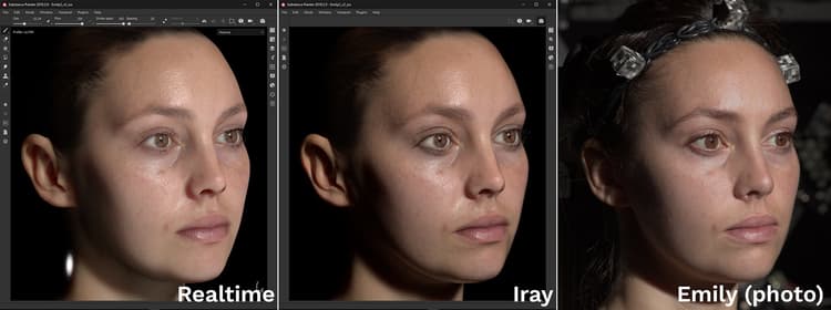 Above is an example with the well know Digital Emily 2 asset. Thanks to the USC Institute for Creative Technologies and members of the Wikihuman project for allowing us to demonstrate our renders with the Digital Emily 2 assets.