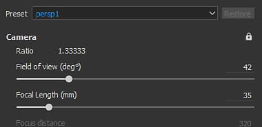 It is possible to switch between cameras, see its ratio and lock its properties to avoid modifying it. A restore button can be used to revert the camera to its initial values.