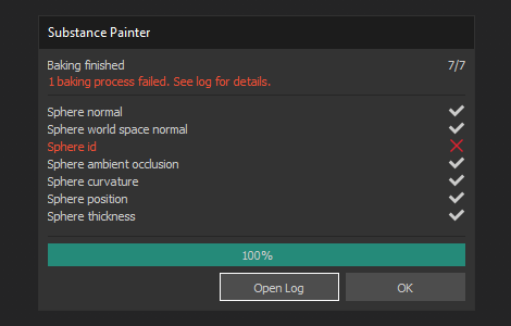 The baking dialog has been reworked and now displays a better status of the current baking process. There is now a counter to indicate how many textures will be computed as well as an explicit list per baker and Texture Set of what is being computed. In case of an error a red cross is displayed next to the baker name. At the end of the process a new button allows to quickly open the log window to learn more about the issue.