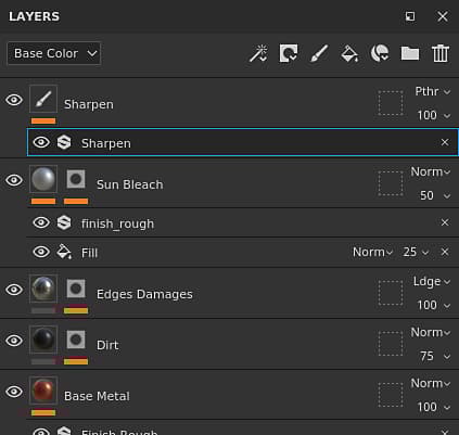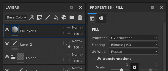 The optimized layer stack thumbnails have been improved. A material sphere is now displayed for fill layers, making it easier to navigate and see the main properties of each layer even when working with the UV Tiles workflow. The thumbnail is generated from the layer information but doesn’t take into account effects to avoid being recomputed too often.