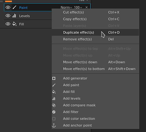 Effects can now be copied across layers and layer stacks, the same way as regular layers.