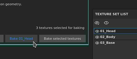 A new button has been added at the bottom of the Baking window to make it quick and easy to re-bake a Texture Set. Using this button won’t affect the custom selection that was previously defined and instead will bake the whole Texture Set (including all its UV Tiles if any are available).