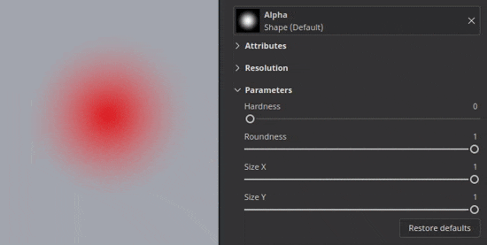 The default brush shape has been updated with new settings to control its size and roundness while taking into account the hardness behavior.