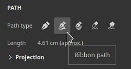 The new Ribbon tool is available next to the other path like tools in the interface. It can be selected either from the toolbar or from the path type shortcuts.