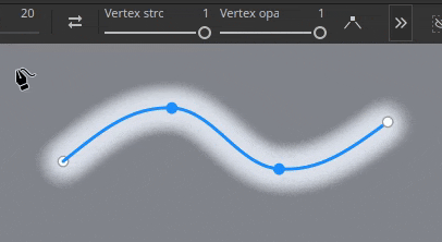 Adjusting the size and opacity per vertex on a path is now possible and not tied to the pressure parameter anymore. These two properties are now handled separately with dedicated sliders in the interface.
