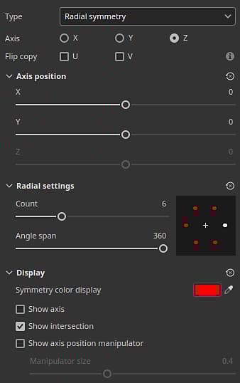 The interface of the symmetry settings has been reworked to be easier to read and quicker to use. Axes sliders each have their own line for example, which helps to be more precise. The radial display has also been downsized to occupy less space.