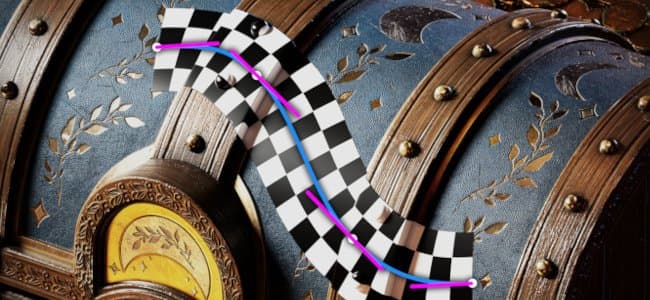 The Ribbon path is a new tool in the path tool family. A Ribbon will transform and repeat a texture along a path without any cuts, with extra control for the start and the end, as well as options for sharp corners.