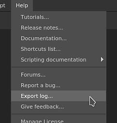 The log file can be directly exported from the application by going into the Help menu and selecting the Export log action.