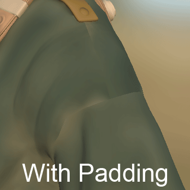 On the example above the gray background bleeds into the UVs (right image), while with padding keeps the color clean (left image).