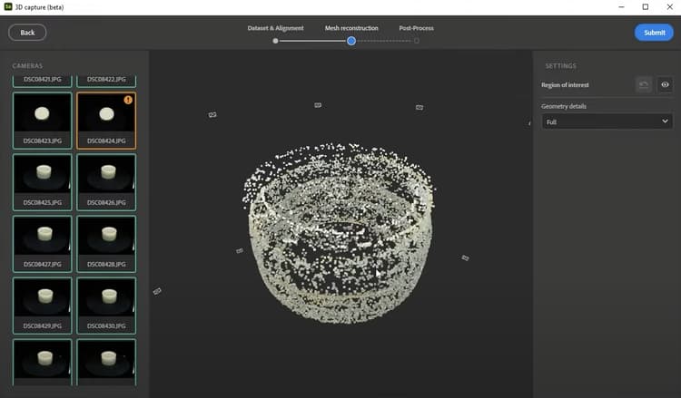 When doing 3D capture or photogrammetry, most of the effort is in taking good photographs, which steps are covered in the previous user guide articles. Also keep in mind we have designed and focused the 3D capture experience for objects up to human size. You might run into issues when you use a very large dataset (that means above 6 Giga pixels, which is 500 12 Megapixel photos).
