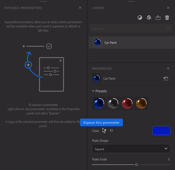 You can now use your material with your exposed parameters in any software that supports SBSAR file format.