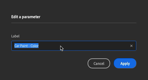Edit the label of your parameter by right clicking on it on the Exposed parameters panel, enter the new name and click “Apply”.