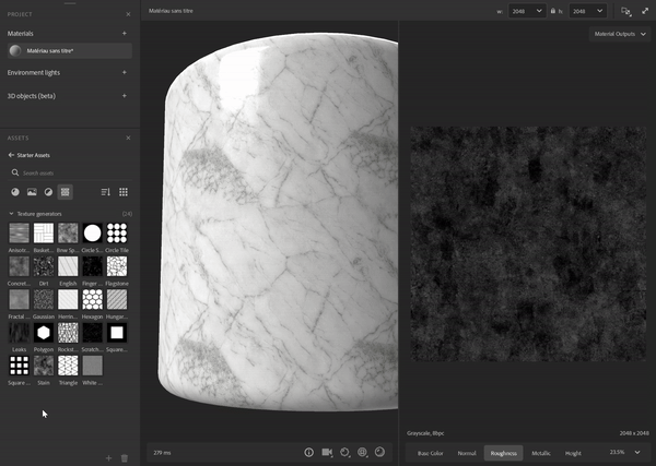 You can import Texture Generators made with Adobe Substance 3D Designer via the Import button in the Layer Stack actions. They must be built in a specific way in Designer to work correctly while imported in Sampler.