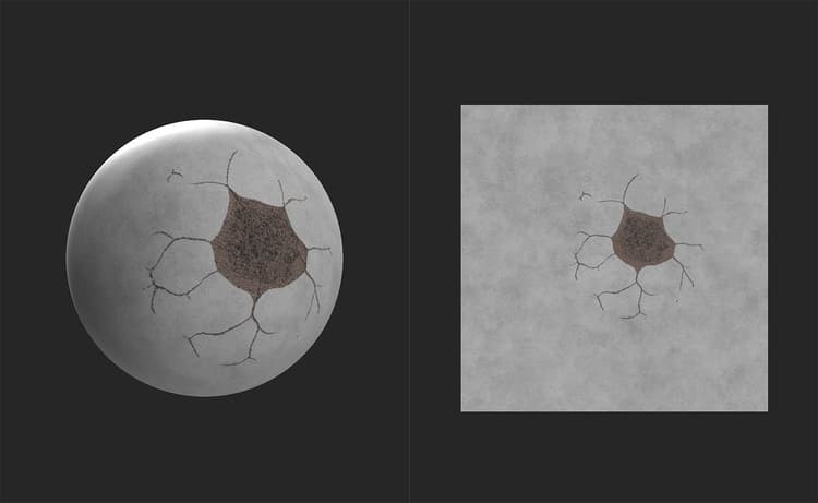 Adjust the colors of the decal material to match the color value of the layers below it. - Normal Blending mode: