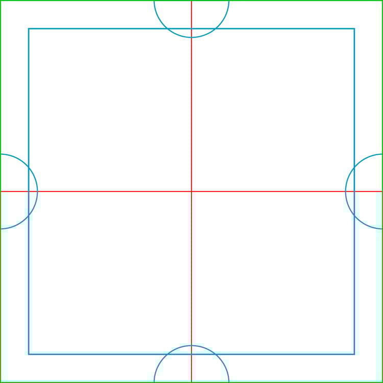 - The blue square and semi-circles are cover the red seams. The filter’s parameters allow you to adjust the borders of the blue shapes to ensure that the red seam isn’t visible while keeping the blue seam as smooth as possible.